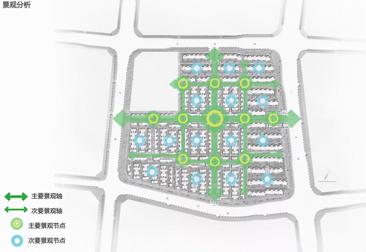 规划序列两轴一环——街,公共轴线。十字轴:礼仪轴;环形轴:生活轴。