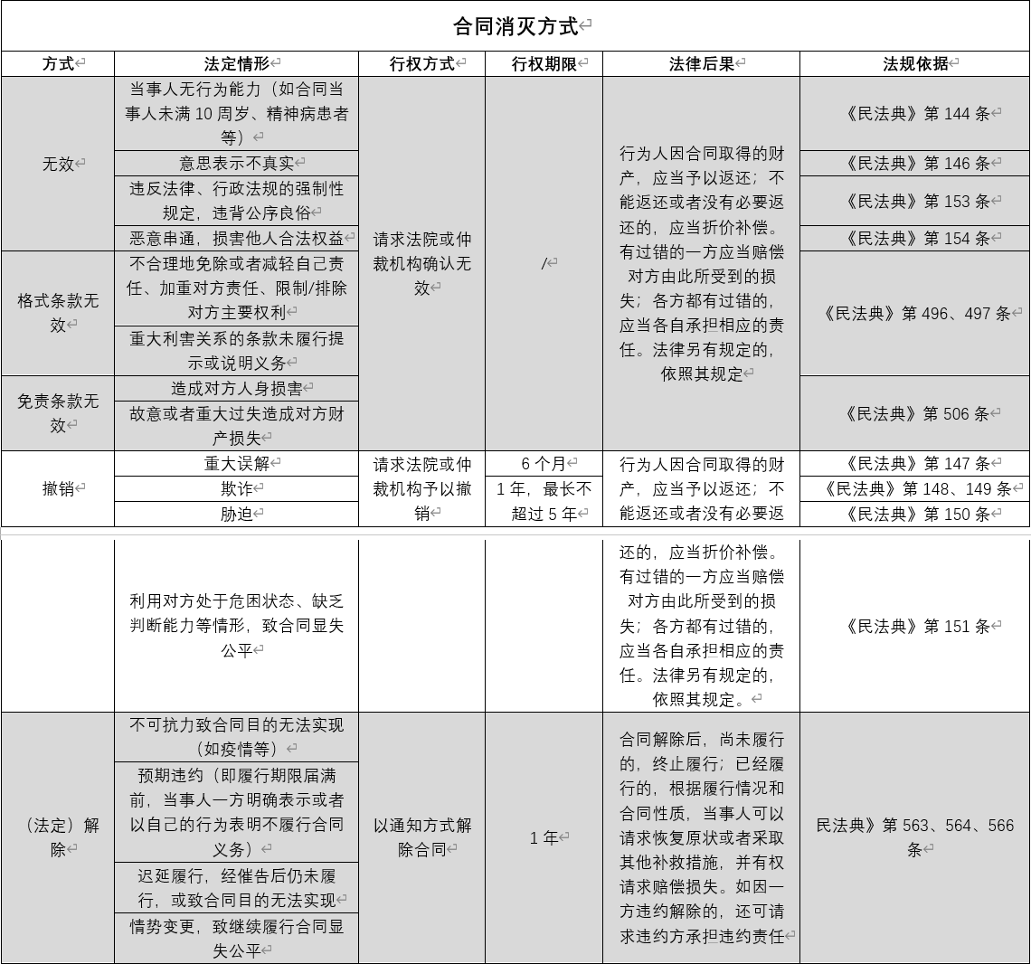 关于合同归于消灭方式和制度,《民法典》及相关法规明确包括合同的无效、解除、撤销、终止。但何种情形,该适用何种合同消灭方式和制度,今天就来为大家盘一盘。