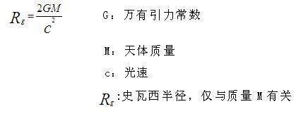 简单来说,史瓦西设定了这样一个天体,它的电荷量为0,也就是它呈电中性,它的角动量为0,也就是不自转,宇宙常数也为0。这本可以用于描述地球和太阳之类自转缓慢的天体,但如果它的质量增大到足够大之后,它的逃逸速度将超过光速。这就意味着没有任何东西能够逃出它的魔掌,所以它本身也无法被看见,这就是“黑洞”。