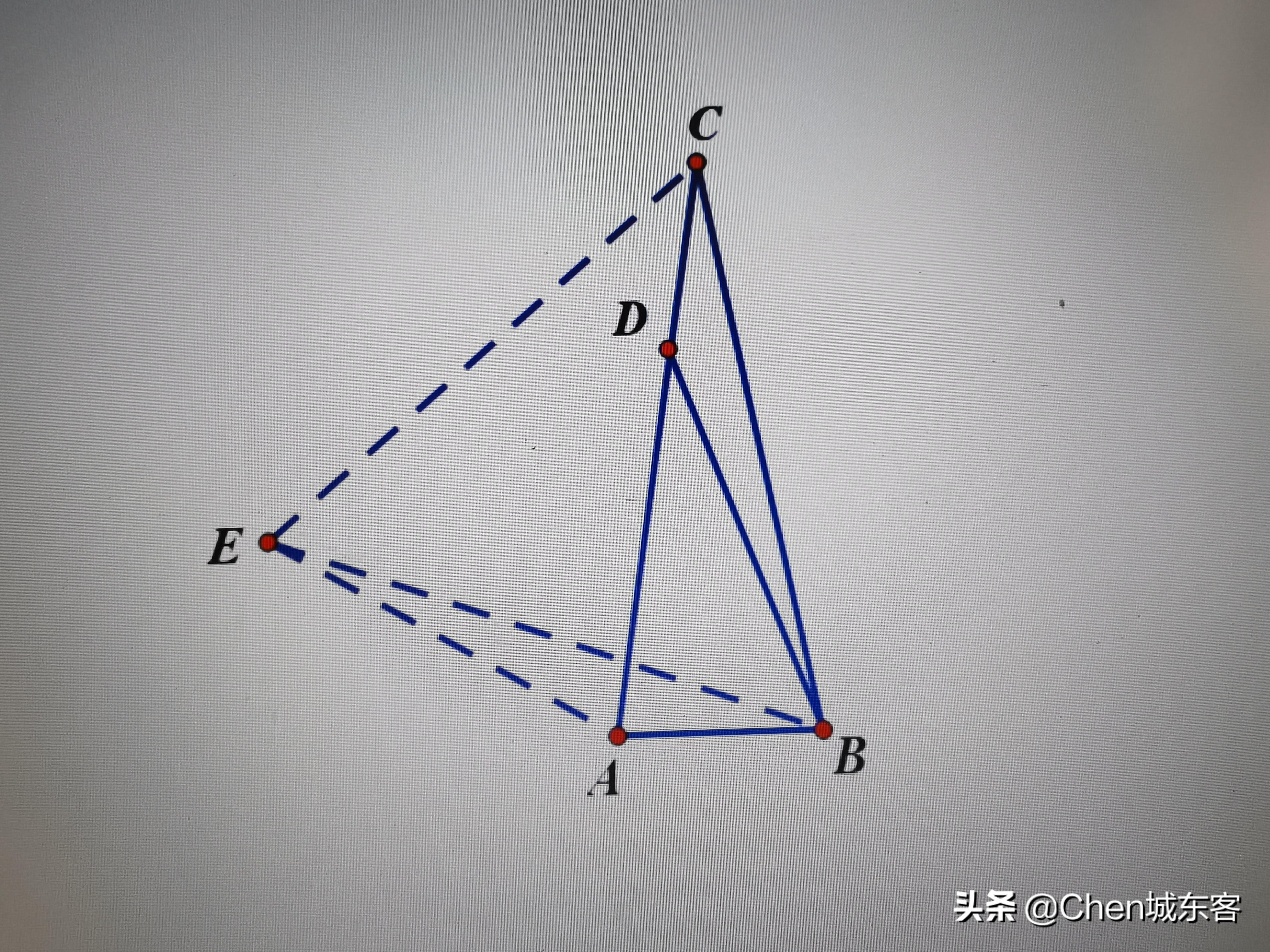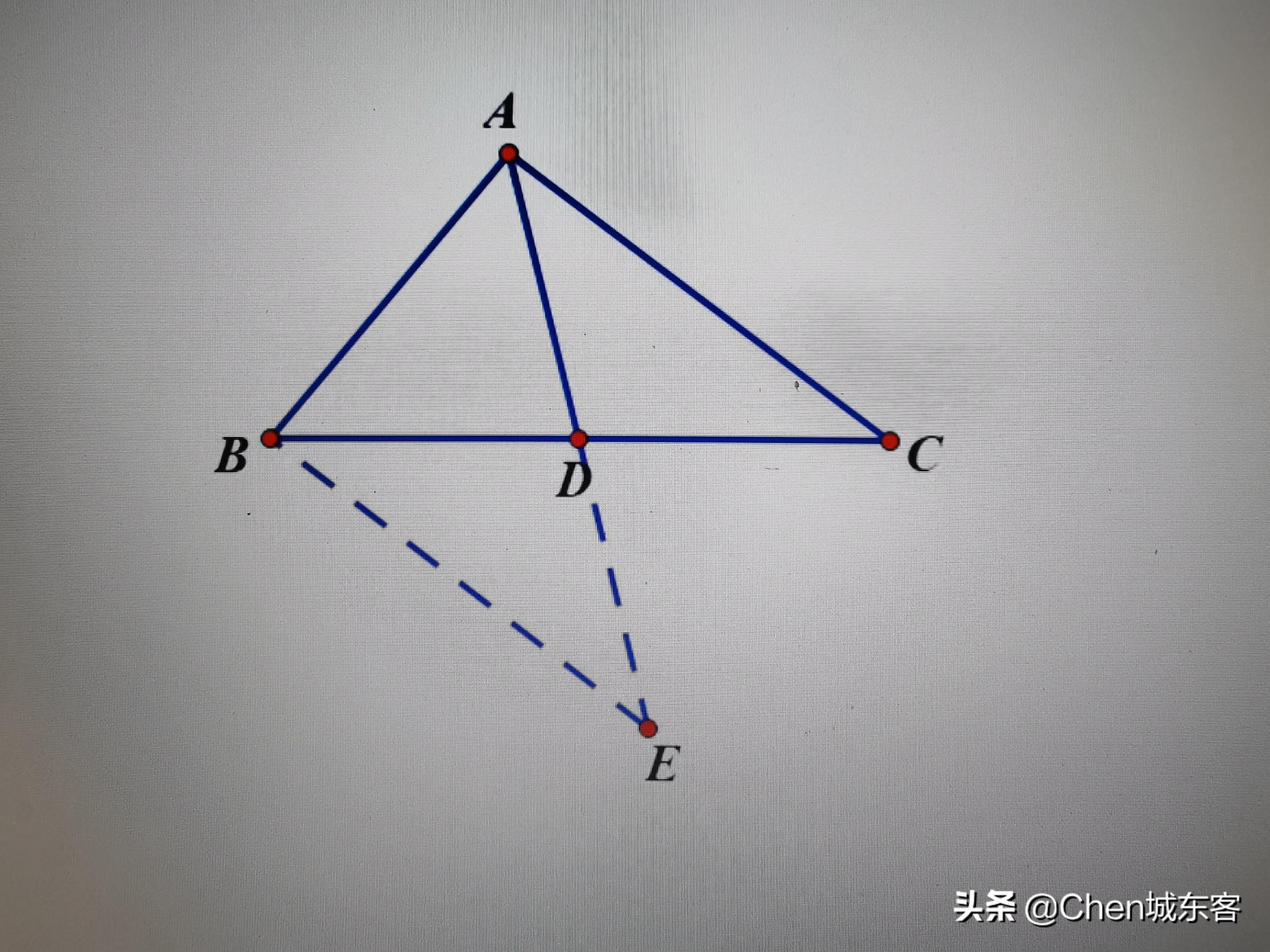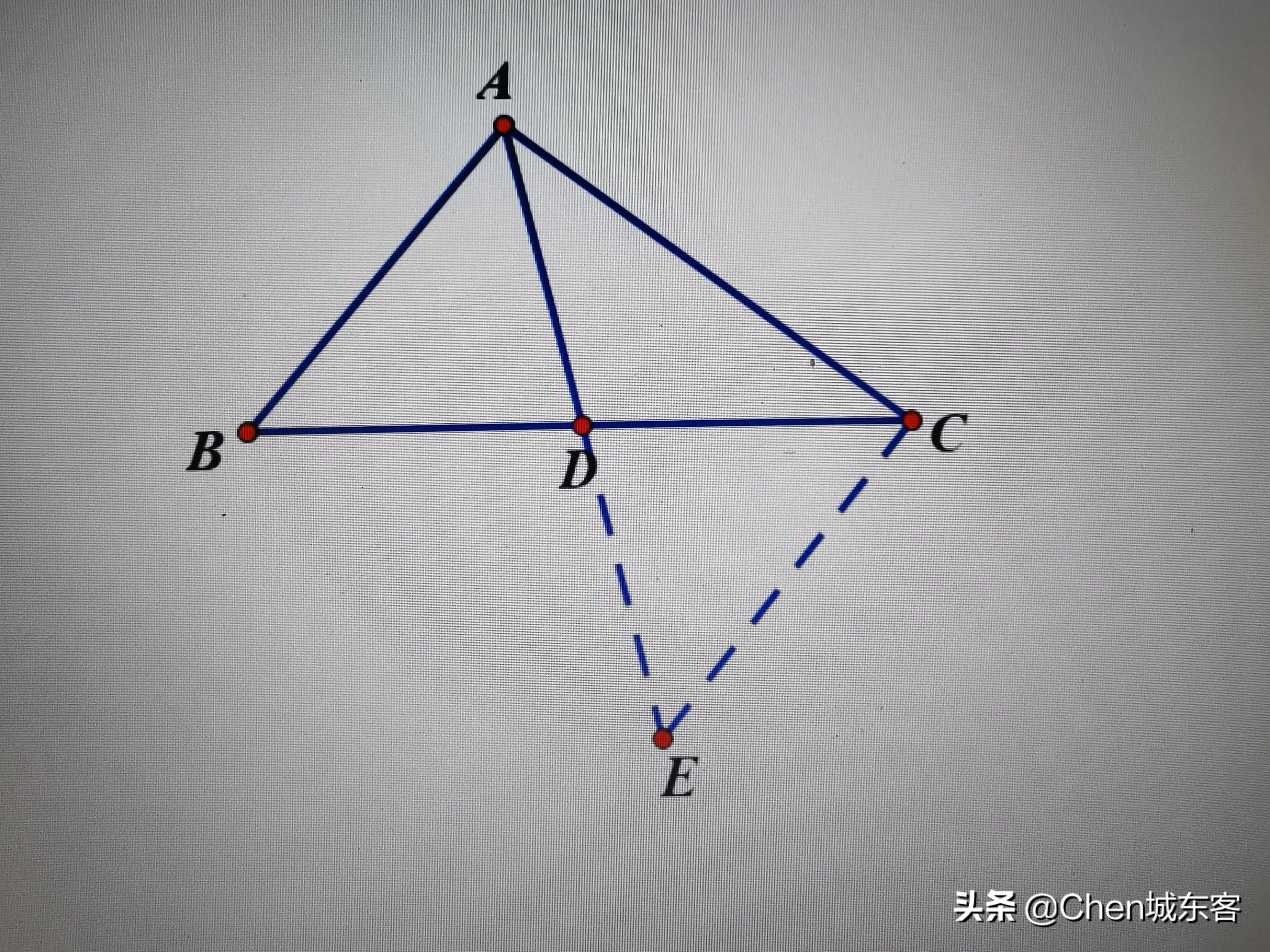 当然连接EC,把AB等值变换到EC,也就是“边角边”证明出三角形ABD与ECD的全等。这样也是同样的手法,把AB、AC、AD的2倍都放在一个三角形ACE中。