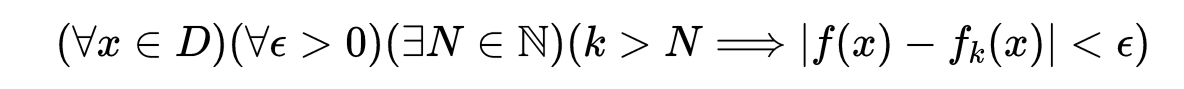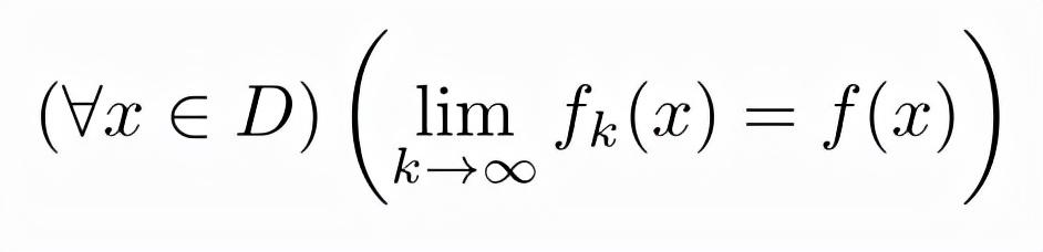 对于域中的所有x和一个任意的ϵ>0,必须选择一些自然数N,使得对于N之后的任何k,fk(x)和f(x)之间的差异都小于ϵ。