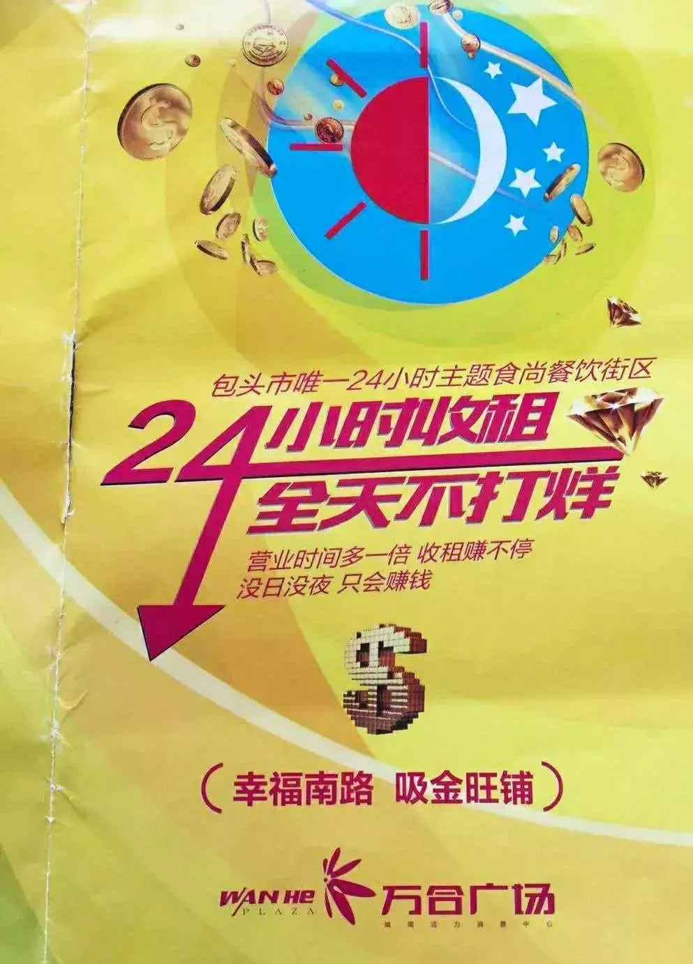 与张佃亮同样将开发商告上法庭的蒋田(化名)更详细地陈述了这一“约定”的来龙去脉。2016年,土生土长于包头的蒋田刚刚大学毕业,因手里正好攥着点积蓄,又恰好看到万合广场“幸福南路吸金旺铺,包头市唯一24小时主题时尚餐饮街区”的华丽宣传页,就动了买商铺的念头。
