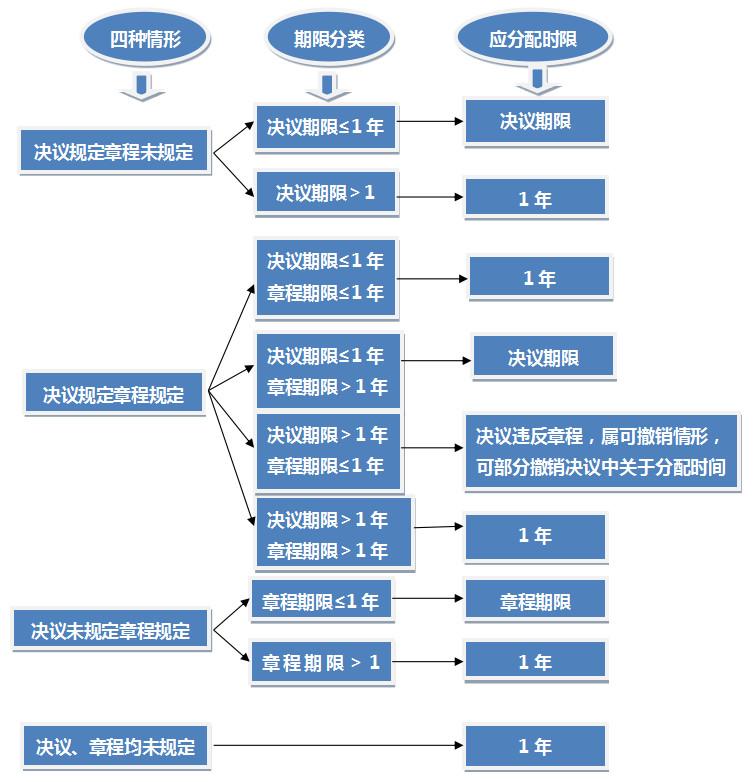 第四条 分配利润的股东会或者股东大会决议作出后,公司应当在决议载明的时间内完成利润分配。决议没有载明时间的,以公司章程规定的为准。决议、章程中均未规定时间或者时间超过一年的,公司应当自决议作出之日起一年内完成利润分配。