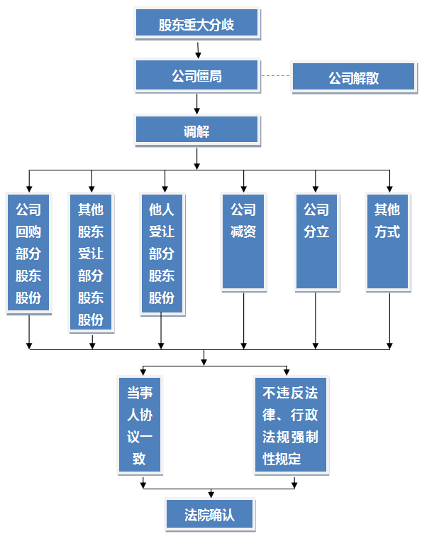 解决公司僵局一般采取股东离散方式来避免公司解散,但有限责任公司基于其人合性特征,股权转让受到诸多限制,不愿意继续经营公司的股东退出公司较为困难。通过在诉讼过程中指引股东协商解决分歧,以调解方式解决股东退出问题,对于解决有限责任公司僵局,维持公司正常经营,避免公司解散有特殊的意义。