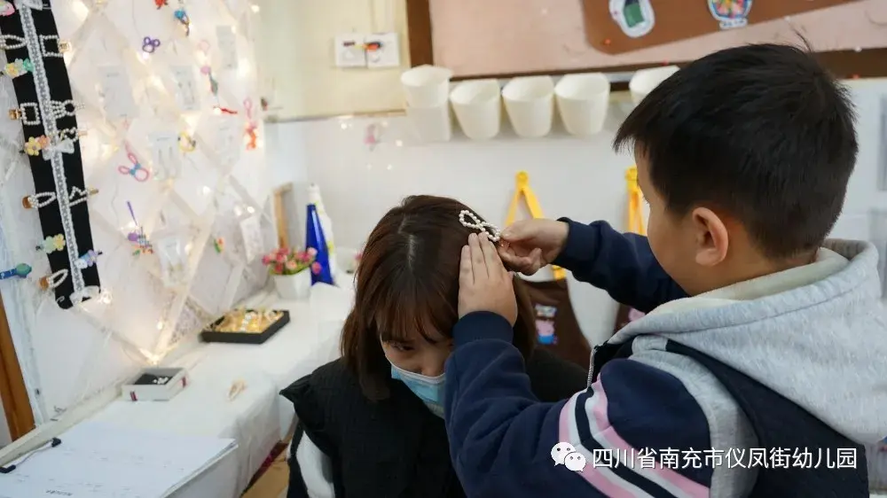 区角活动是幼儿园教学活动中一项重要内容。这一次,我们邀请家长深入大班体验区参加活动。家长们走进教室,“一班一品”的环境创设吸引家长们驻足欣赏。爱心医院、购物超市、美食天地等角色体验区热闹而有序,家长们被小朋友的热情感染,纷纷化身顾客、美食家等,与幼儿一起体验角色游戏的乐趣。美工区里,孩子们安静而细致的工作,瞧,展示架上琳琅满目的小商品就是出自孩子们的巧手。