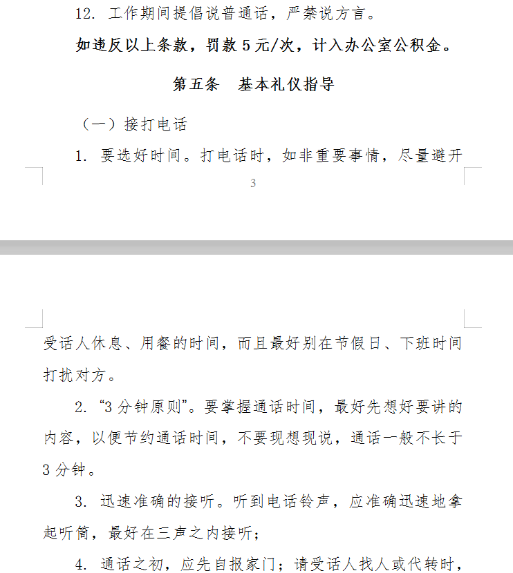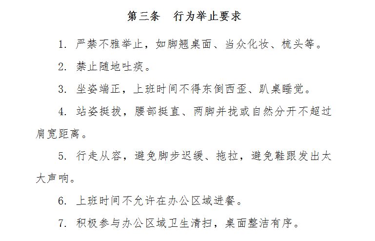 版权声明:我们致力于保护作者版权,注重分享,被刊用文章【公司日常行为规范(办公室人员日常礼仪行为规范)】因无法核实真实出处,未能及时与作者取得联系,或有版权异议的,请联系管理员,我们会立即处理! 部分文章是来自自研大数据AI进行生成,内容摘自(百度百科,百度知道,头条百科,中国民法典,刑法,牛津词典,新华词典,汉语词典,国家院校,科普平台)等数据,内容仅供学习参考,不准确地方联系删除处理!;