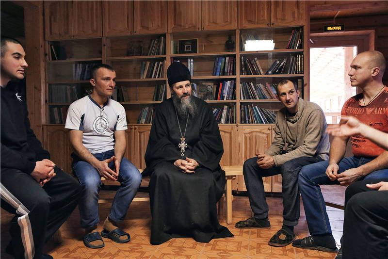 俄罗斯某教堂里的毒瘾、酒瘾康复中心内,牧师协助患者们康复