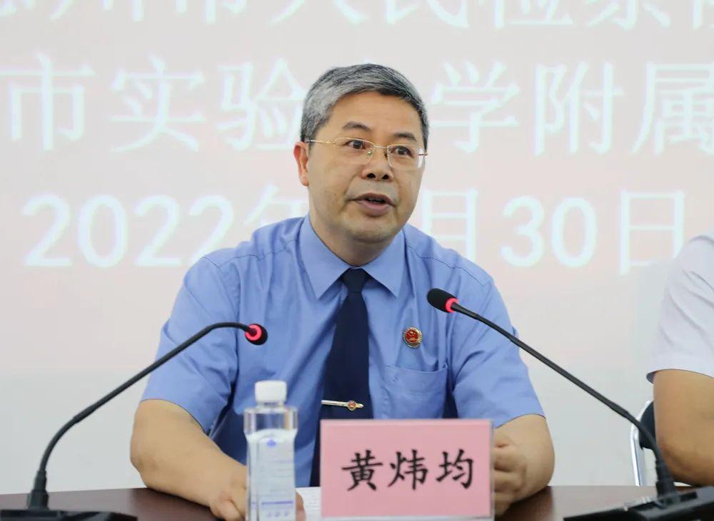 黄炜均代表市检察院向校方赠送法治宣传手册