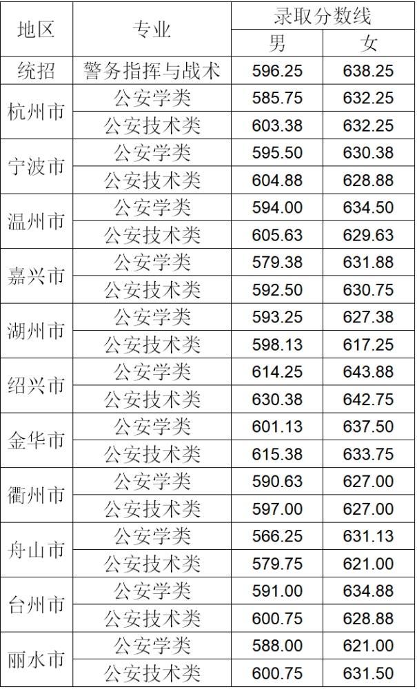 2021年浙江警察学院“三位一体”综合评价招生录取分数线:
