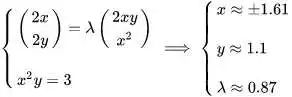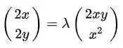 在相切的时候,两者的梯度方向都在同一条直线上,可以称之为,成比例,这里用比例系数来表示: