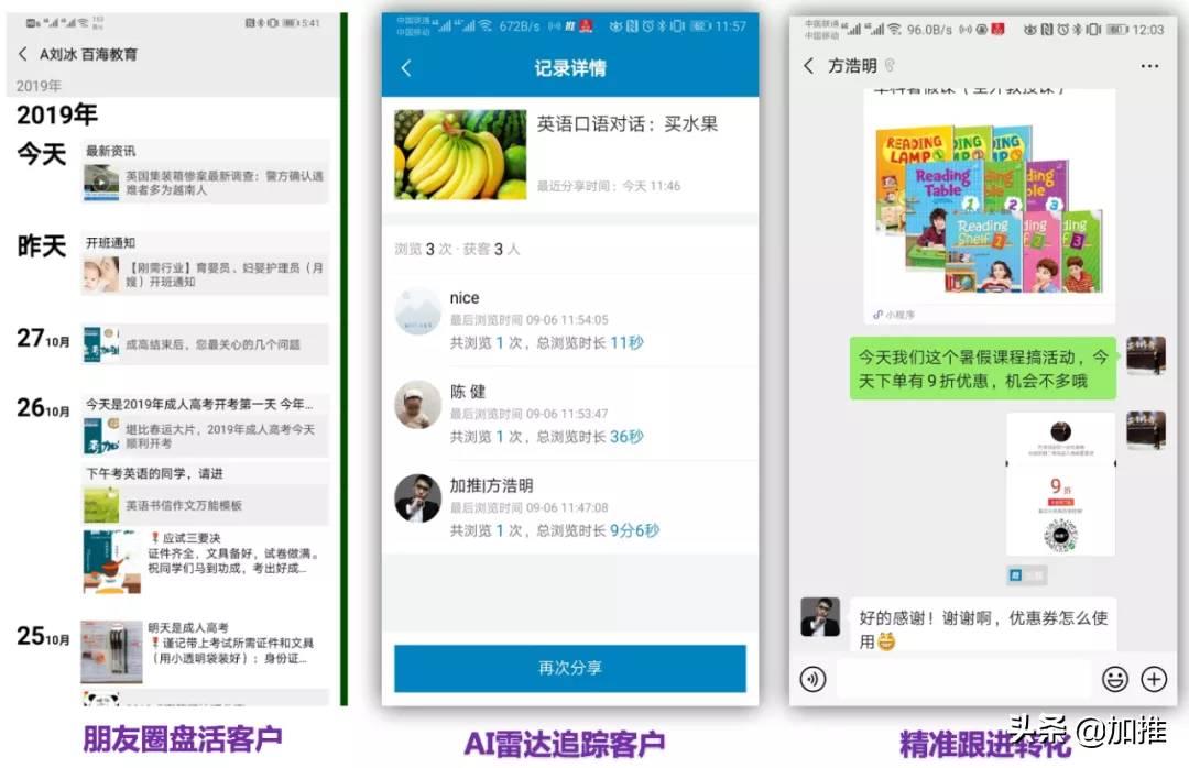 方案二:搭建企业标准化的智能传播系统,借助加推企业文库、海报、带货短视频系统将公司里的每个员工与客户连接起来,使推广变成每个人都能做的事