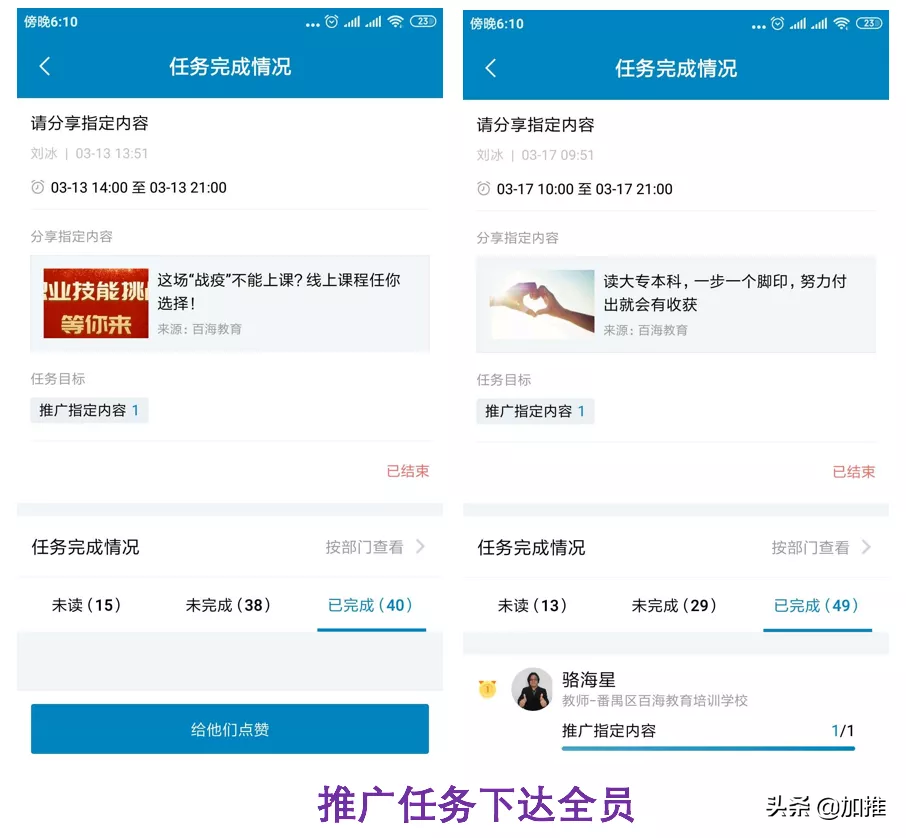 方案四:通过加推推力系统,一键下达任务,随时统计每个人的任务完成情况,让全员营销/全民营销成为企业降本增效的重要举措