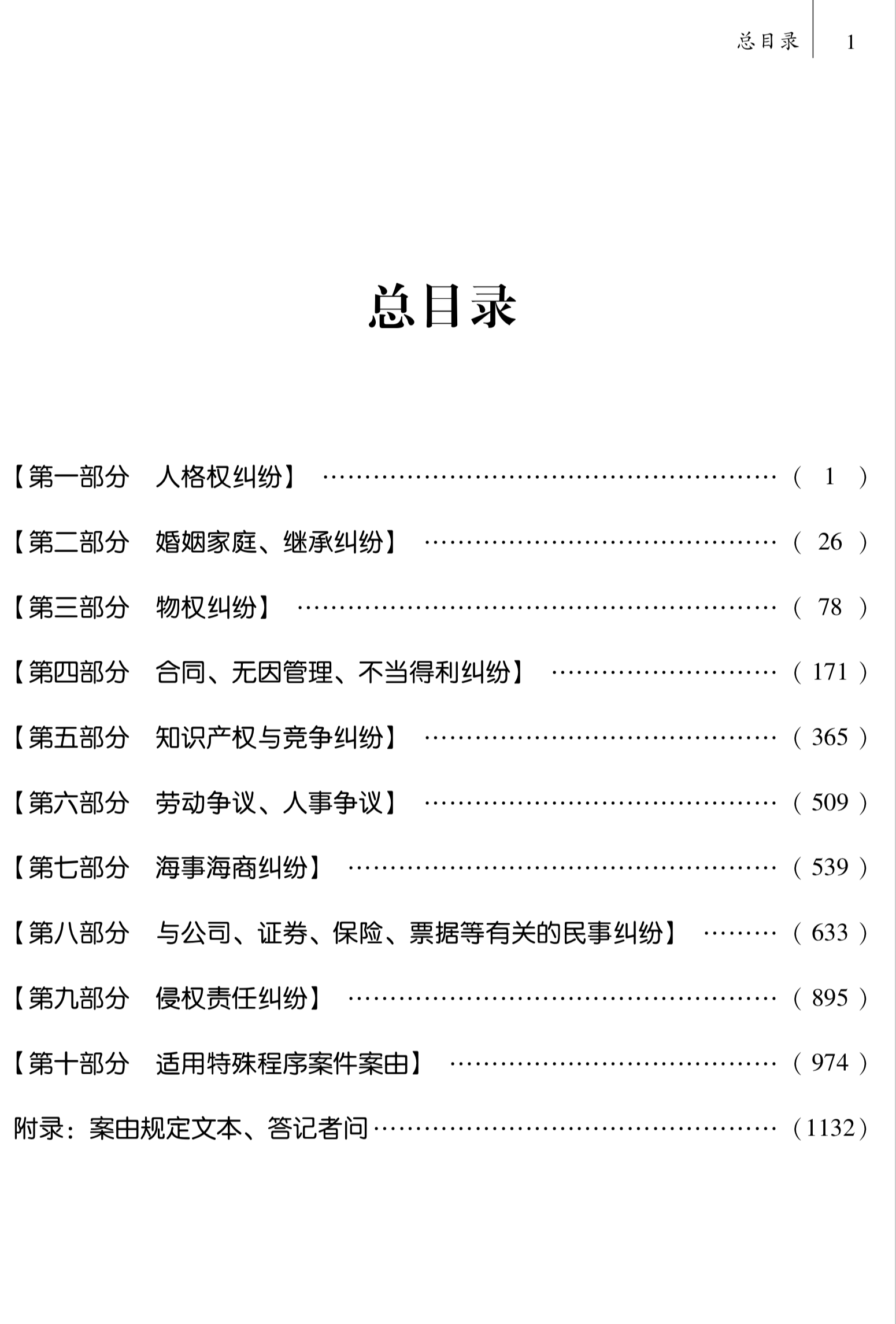 2.全。本书以三级案由为基础单元,每个三级案由下均设【案由适用要点】和【请求权基础规范指引】两个栏目。其中【案由适用要点】分为释义、管辖和适用中应注意的问题三个适用要点,帮助使用者掌握该案由并进行准确适用。【请求权基础规范指引】则收录了每个案由在适用时可能需要用到的常用法律条文。读者通过本书就能够掌握某一类纠纷案件的全貌。