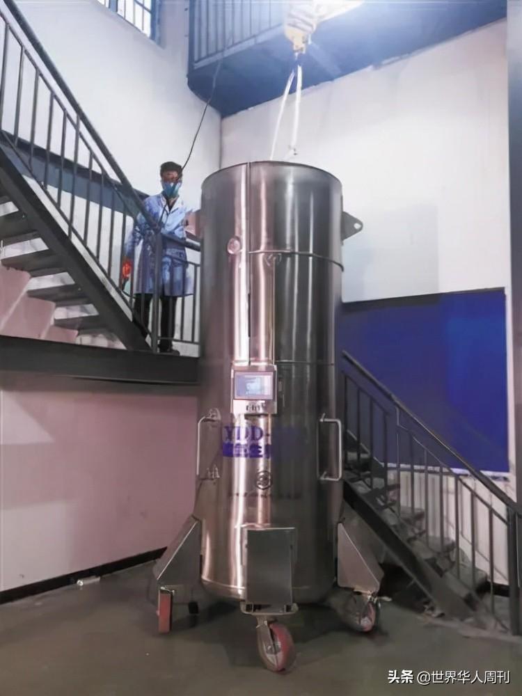 保存展文莲遗体的液氮罐