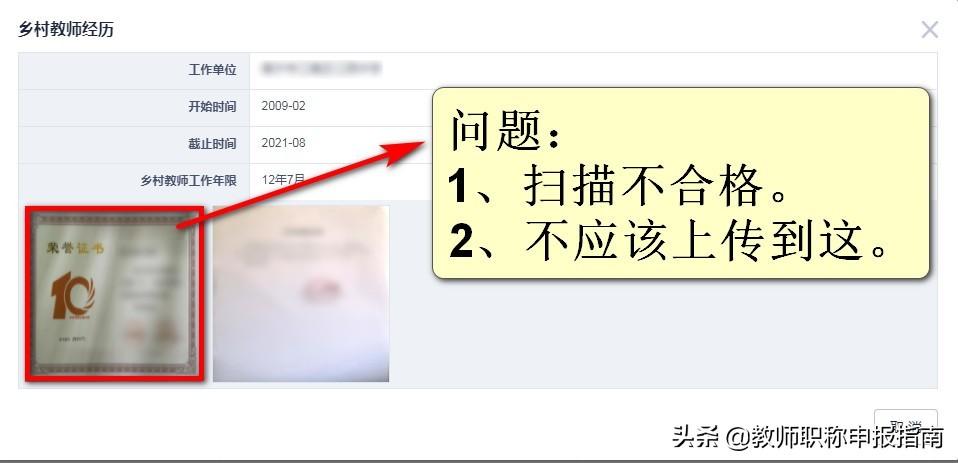 乡村10年荣誉证书扫描不规范。不应该上传这到。规范填写: