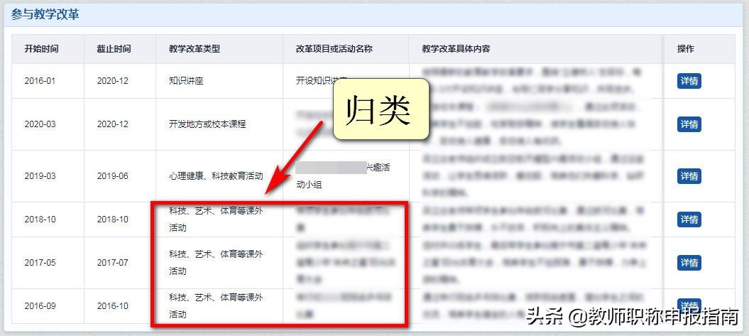 教学改革类型不归类。教学改革具体内容写得过于简单。3、每一条信息的详情都上传了教学改革的证明扫描件。