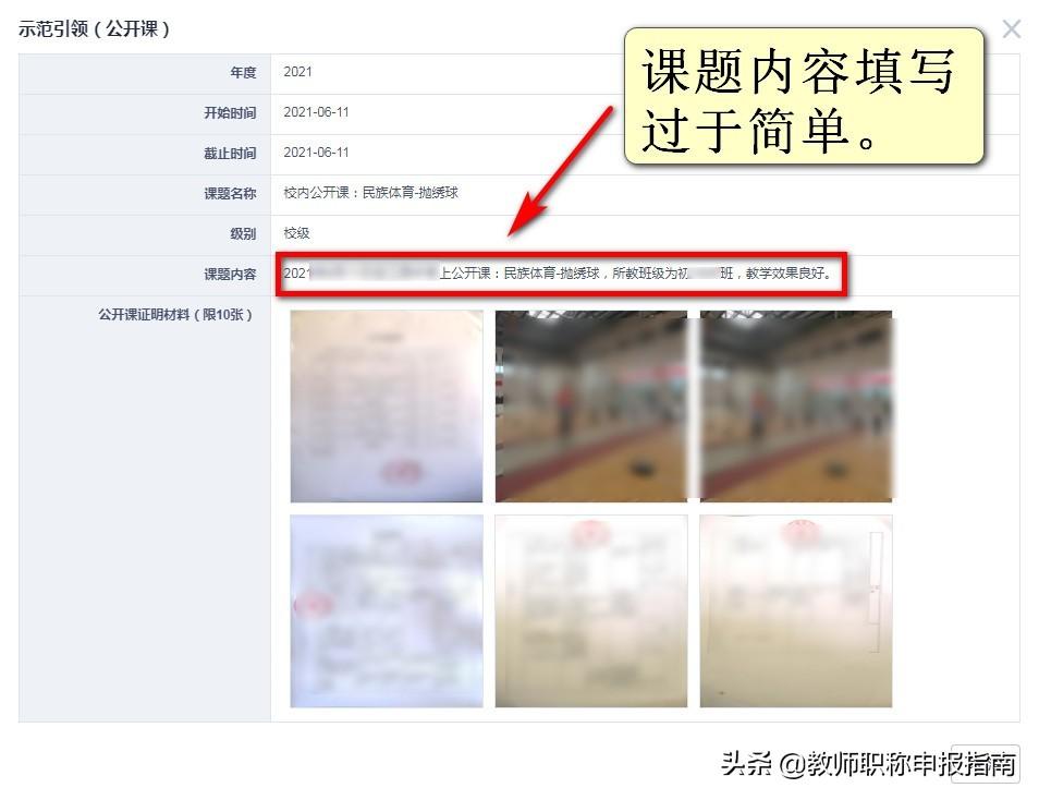 丰富课题内容。公开课证明扫描件只放在第一条信息,无需每一条信息都要上传。公开课的照片和教案,可以不用上传。(不同地方可能要求不一样)问题:青年教师还没有定级。