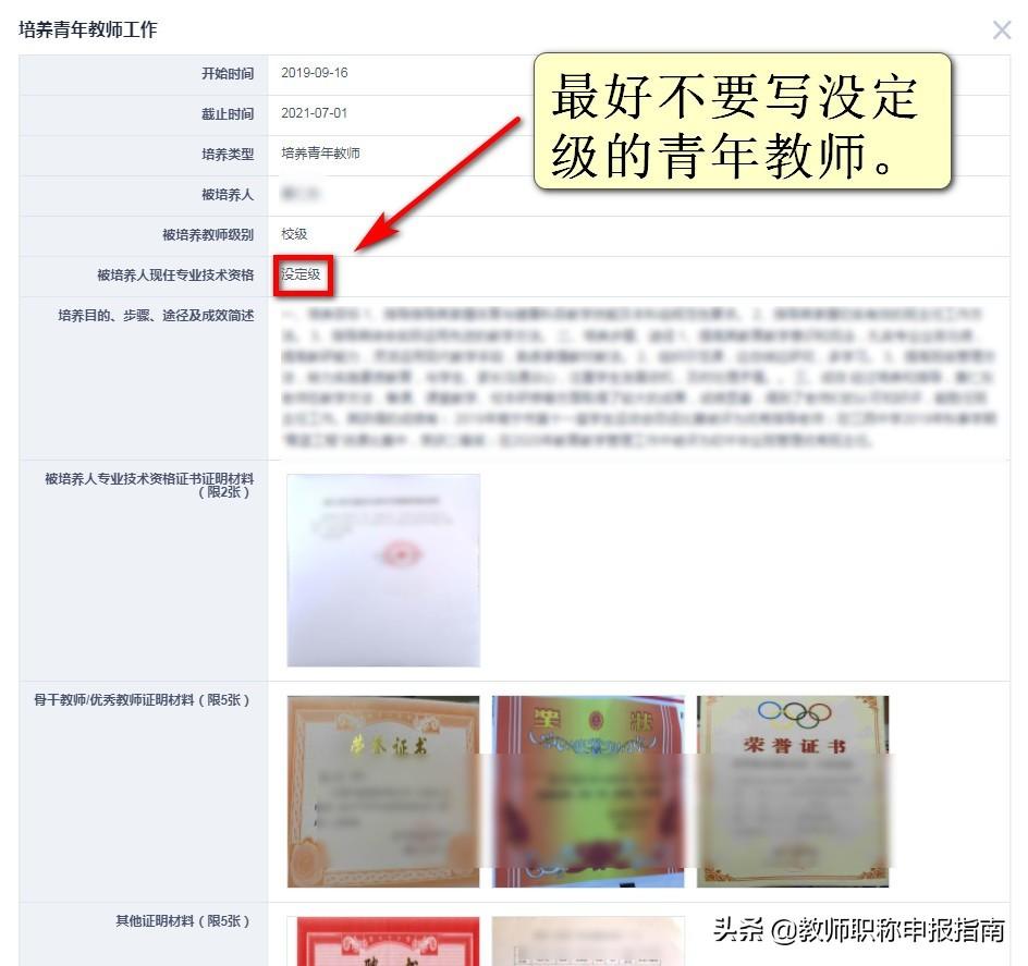 规范填写:最好不要写没定级的青年教师。