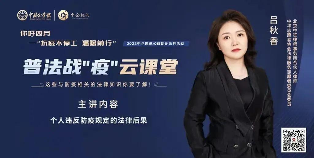 中征律所吕秋香律师参与普法战“疫”云课堂——疫情防控相关法律知识公益普法活动,针对“个人违反防疫规定的法律后果”话题作出专业的法律解答和普法宣传