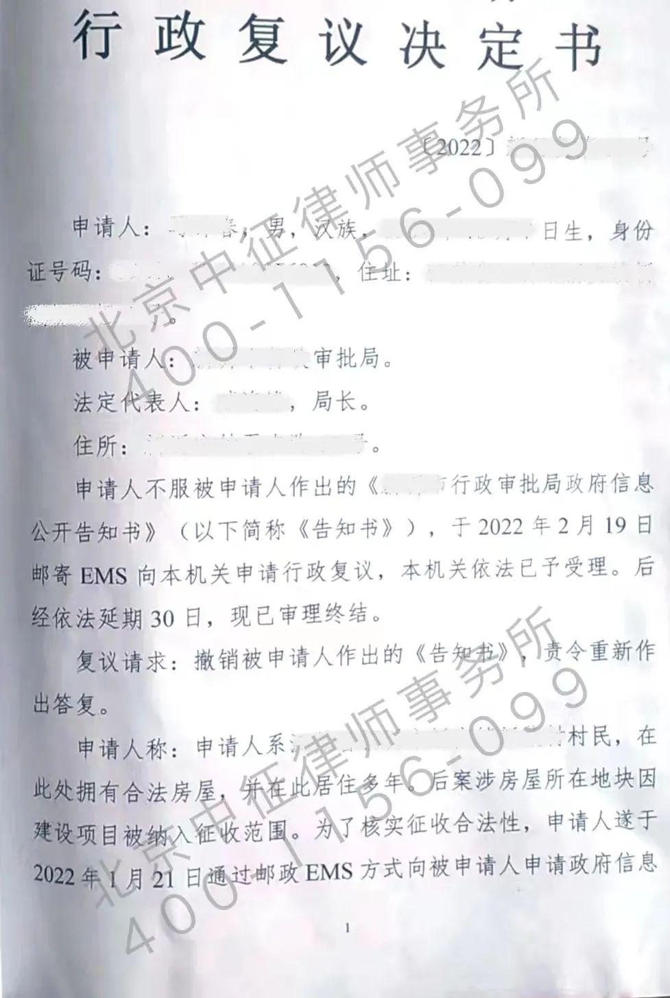 北京中征律师事务所在办理江苏省新沂市某村房屋征收案件过程中,依法向市行政审批局申请信息公开,该局未正确履行政府信息公开法定职责。委托人在中征律师的指导下,向市政府提起行政复议。市政府作出《行政复议决定书》,撤销市行政审批局作出的信息公开告知书,责令其重新作出处理。中征律师成功维护委托人合法权益!
