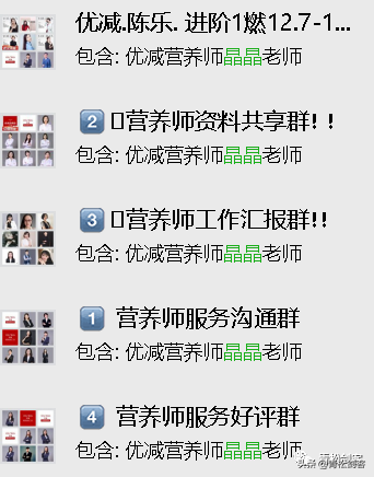 群里依次为:代理---客户---营养师客服1---营养师主管---营养师---营养师客服2---客户朋友或代理朋友或者旁观者(潜在客户)