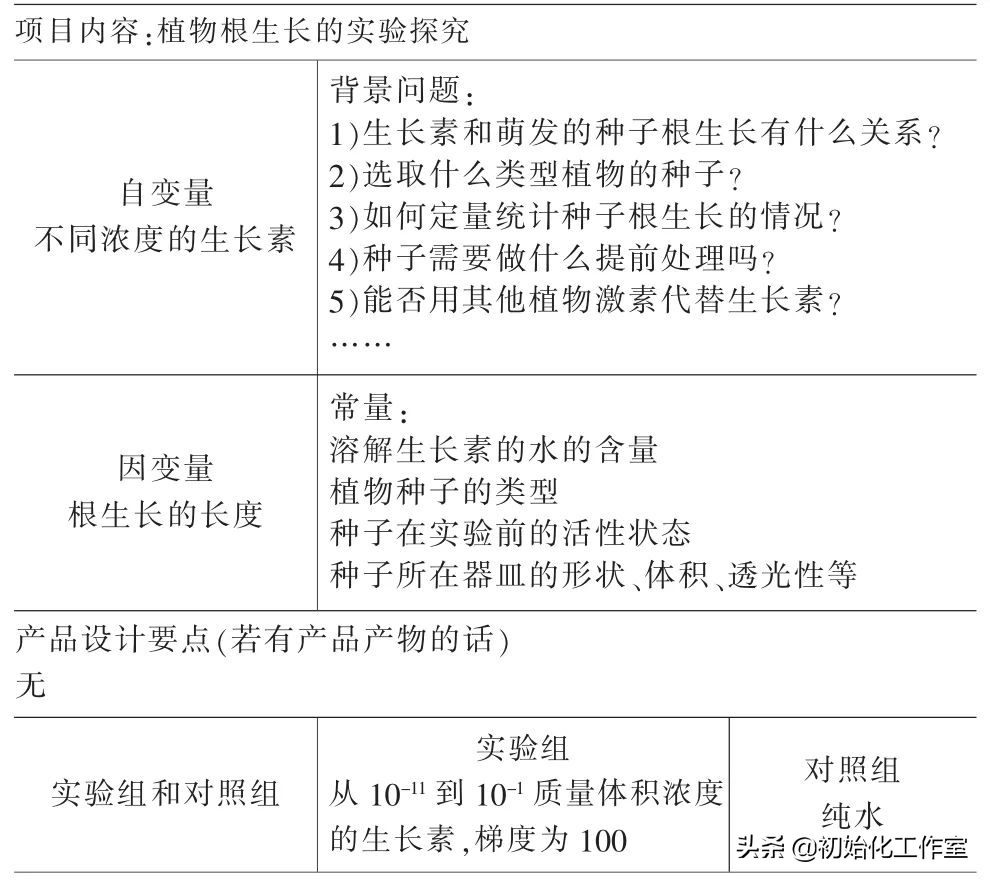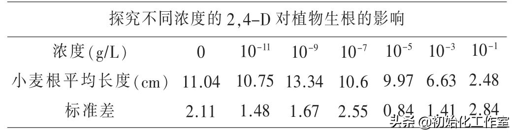 在教师的指导下,学生将在40℃水浴中浸泡1 h 的小麦种子铺在含不同浓度2,4-D 溶液的纱布上。之后将种子置于适宜相同的条件下进行培养,交于实验教师,学生未知各实验组别种子的生长情况,在项目进行中学生对不同浓度下的种子生根情况进行预估,并尝试说明原因,暴露了前科学概念。