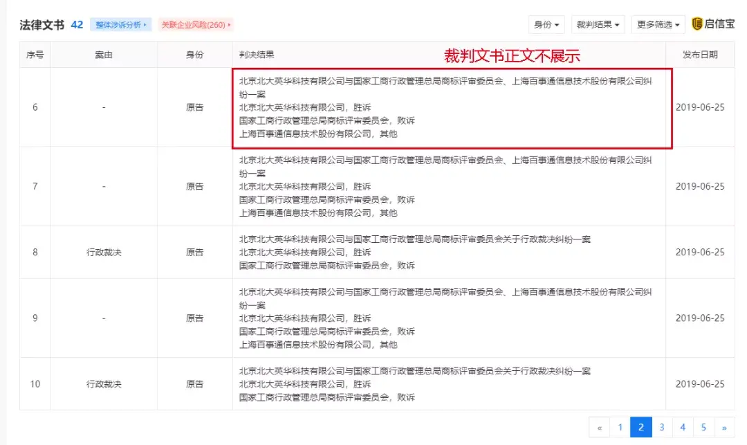 2)企业自身关联的裁判文书也关闭,不展示正文;