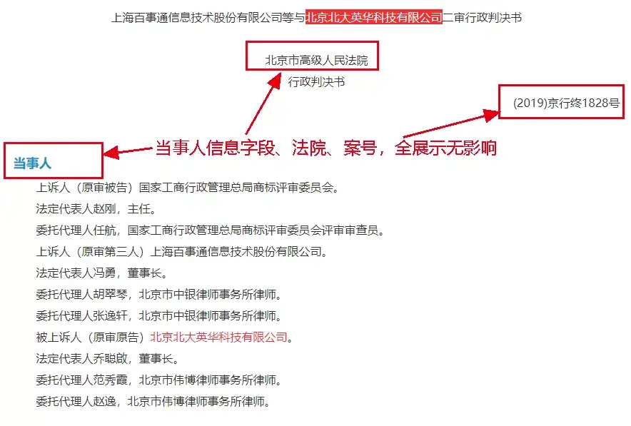 2)裁判文书“当事人字段”的全字段隐藏,增加“裁判文书网链接”补充