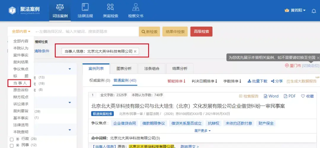 而且,北大法宝的数据库案例信息更新及时、案例资源齐全,检索引擎、检索字段的设置也都能够符合、满足我们律师的检索逻辑与需求。