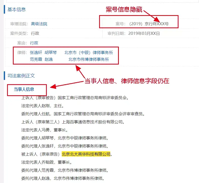 2)当事人、律师信息仍在,仅“法院、案号、法官“隐藏