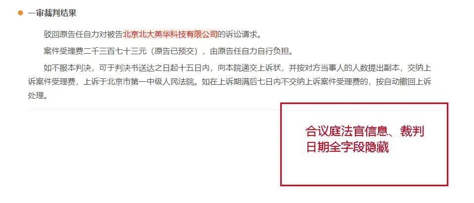 3)法官字段隐藏,裁判日期、案号、法院信息仍保留展示
