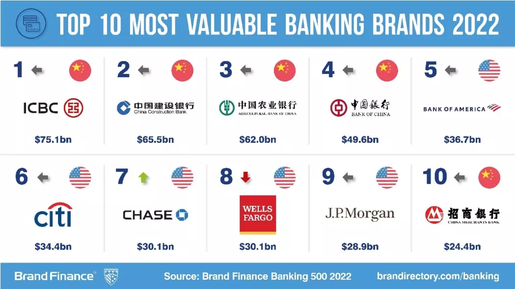 最近,《银行家》杂志联合Brand Finance发布了“2022全球银行品牌价值500强排行榜”(Banking 500 2022)榜单。