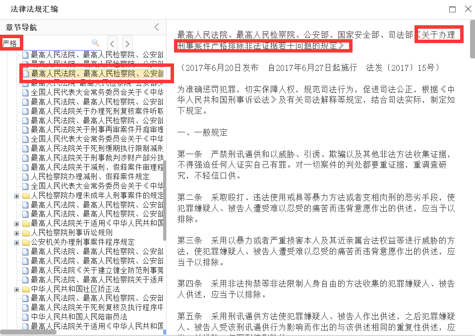 比如:当你想找非法证据排除相关考点,可以联想到《严格排非规定》,则搜索“严格”,就能找到,但需要我们把重点法条的搜索关键词记忆下来。