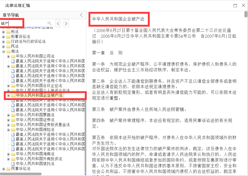 注意:尽管法条搜索很方便,但带来的便捷实际上还比较有限的。因为通过章节名称来搜索法条,就需要熟悉法条的目录结构,熟悉重点法条的位置,这也是快速定位法条的关键。