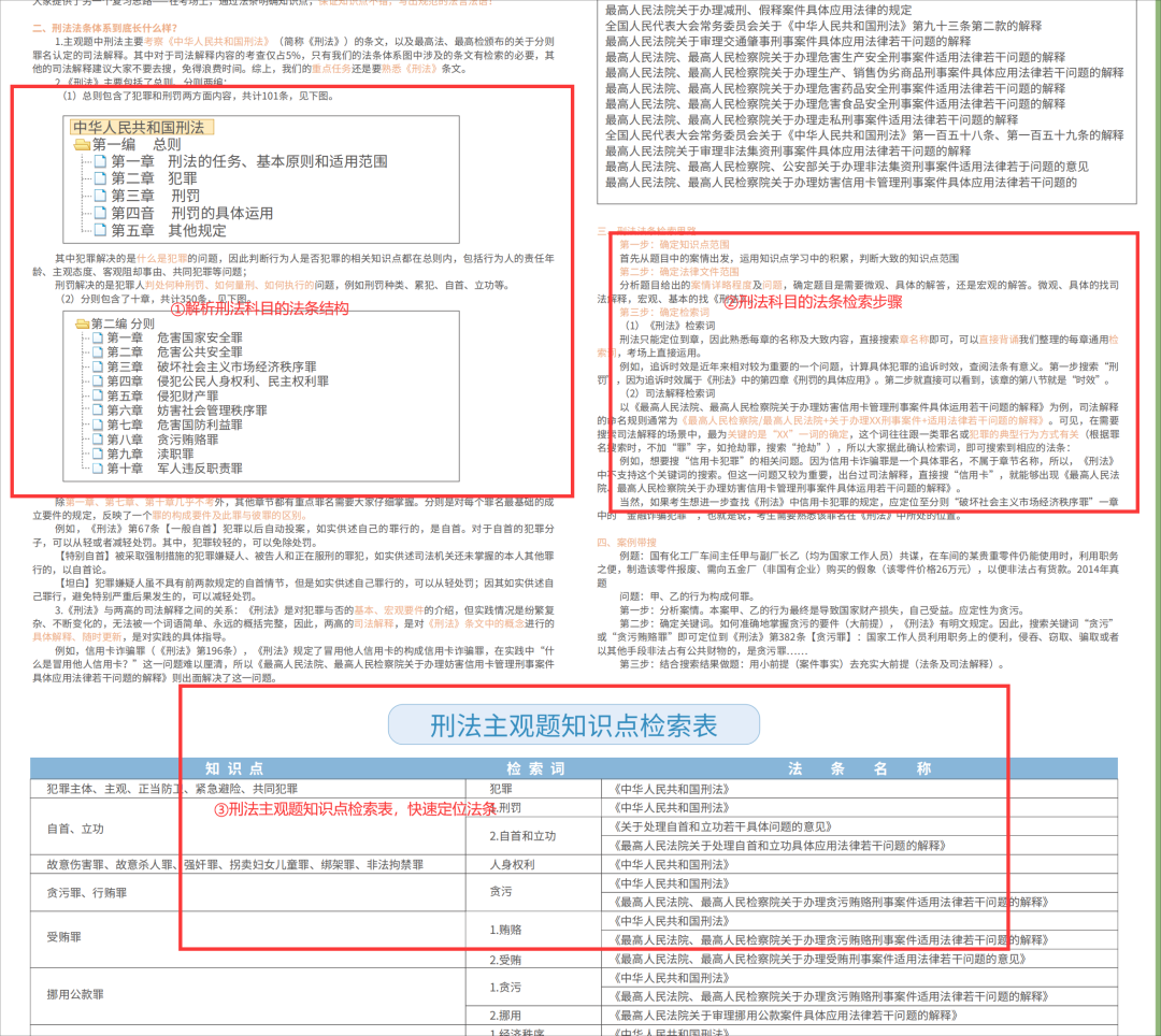 特别是重点法条检索表,一定要看,最好能够记下来,能帮你快速定位到你想找的法条附近,后面有整理好的PDF下载版,可以打印下来使用!