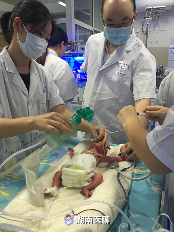由于宝宝为极低体重儿,出生时体重只有1.06千克,随即出现了呼吸急促,呻吟等症状,病情危重。