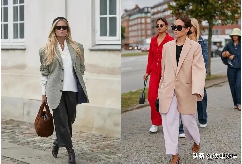 垫肩宽松西装,加贴身西裤或牛仔裤是最佳搭配组合,不仅凸显了最瘦的腿部,还能将视线从腰部转移。