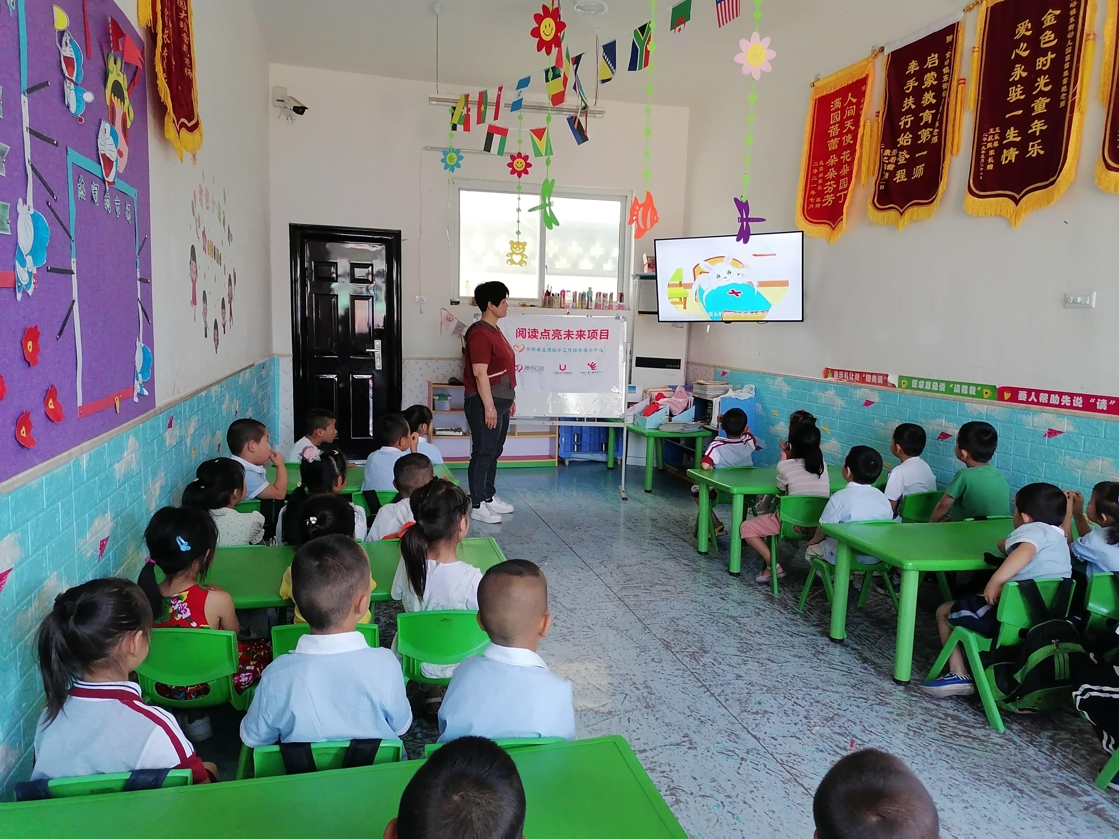 2022年7月5日,合阳县益源社会工作综合服务中心,给孩子们开展了阅读点亮未来项目,金裕东街幼儿园儿童读乐园服务站,烫伤安全《皮皮的故事》。
