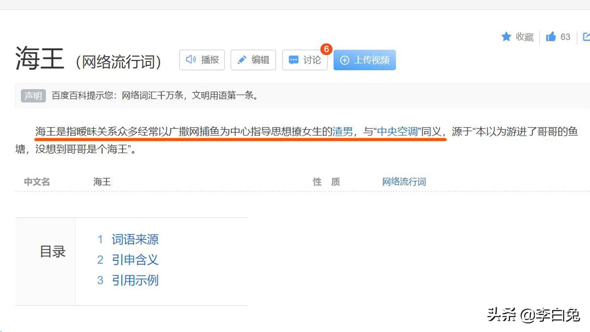 可能有朋友还不知道“海王”是什么意思,给诸位科普一下,百度百科对“海王”一词的解释是:海王是指暧昧关系众多,经常以广撒网捕鱼为中心指导思想撩女生的渣男。