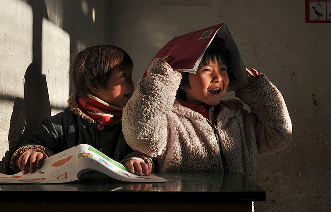 一辆承载着希望的红色卡车,开到学校门口,因为老师说这里有自己的一套新桌椅,学生们小小的身躯扛起车内的桌椅,也扛起了自己的希望。