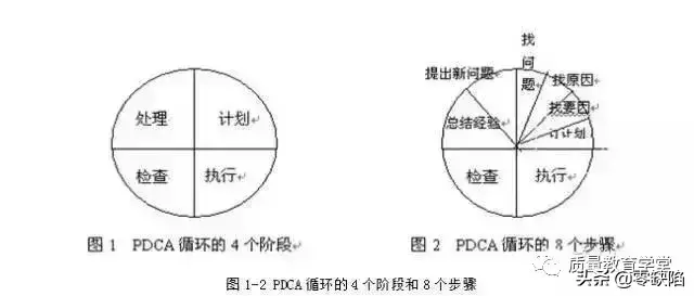 PDCA循环的八个步骤:找问题、找原因、找要因、定计划、执行、检查、总结经验、提出新问题,提出新问题又进入下一个循环。