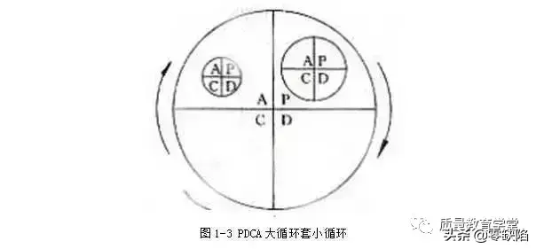 我们每一个人就可以做PDCA一个小循环,每一个班组又有一个中循环,每一个部门又有一个中大循环,整个企业就是个大循环,所以,每一个人、每一个部门都可以做PDCA。