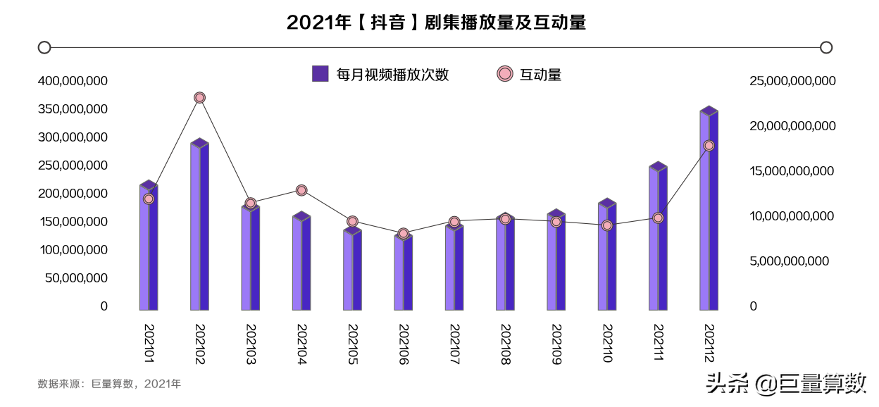 整体剧集市场“精品化”的同时,人们将兴趣及时间花费到更加快捷便利的媒介平台上。人们开启在抖音的追剧模式,2021年,抖音剧集内容月均播放128亿次,电视剧内容片段月均互动量1.8亿次,剧中热门话题与时代情绪被传播与分享,我们发现,除了信息获取之外,媒介平台演变为更具实效性、分享性、交流性的平台,抖音平台在其中的价值也逐渐开始凸显。