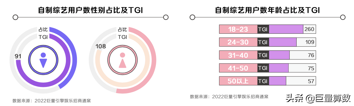 关注自制综艺的用户中,女性偏好度更高,18-23岁的人群偏好度更高,年轻群体具有极大潜力。城市线级分布均衡,一线、新一线群体对抖音自制综艺偏好性更强。