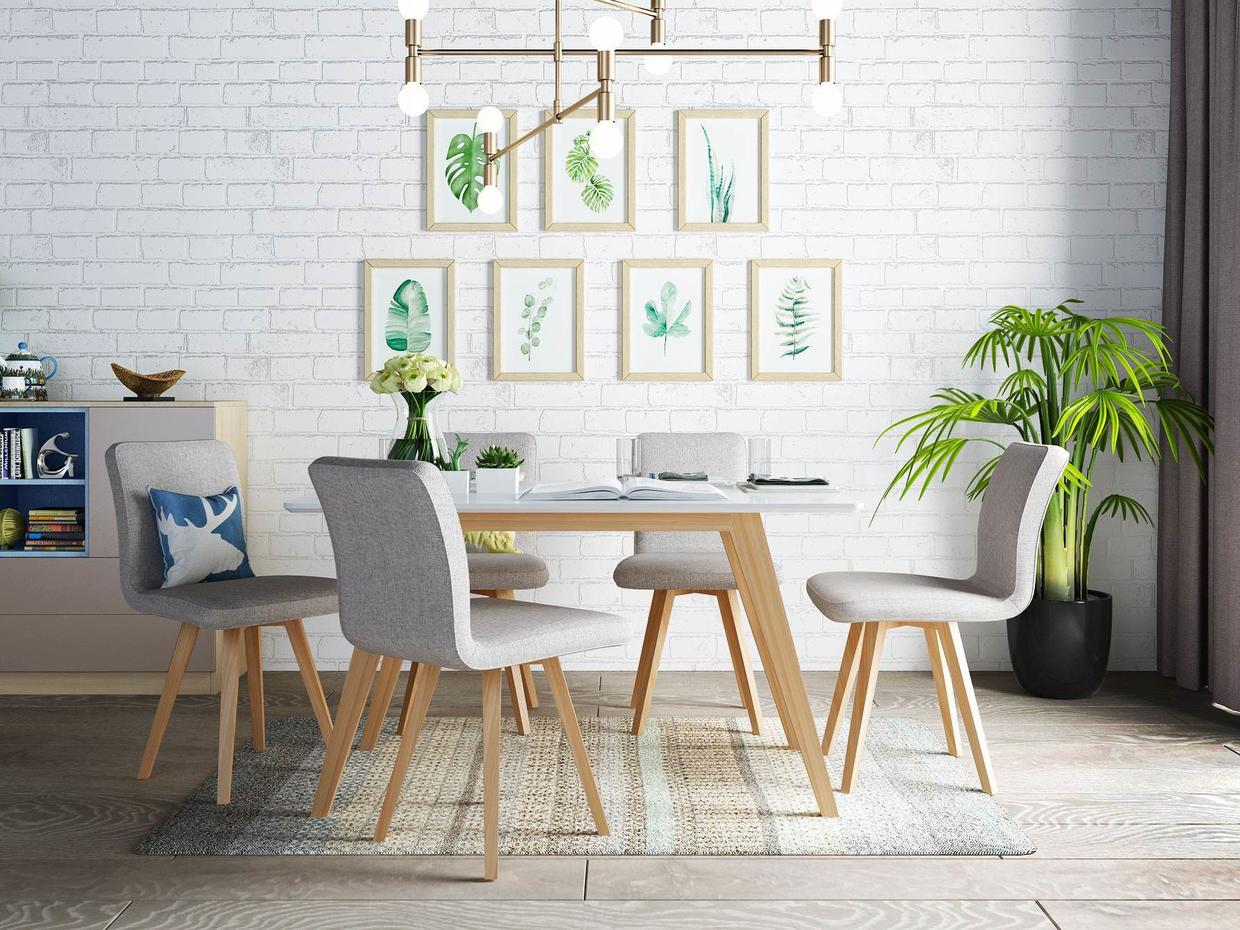 文化砖的背景墙上贴各种各样的绿植挂画,给家居生活带来一种清新自然的感受,同时给整个用餐环境提升不少生命力与活力。