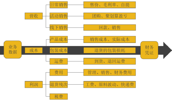 数据化:将业务费用发生处实现数据化,使用单据进行承载流向确认:根据单据确定为是资金流入还是资金流出财务凭证:根据单据、资金金额、流向生成对应的财务凭证整个过程可以用下面一张图来清楚的表示: