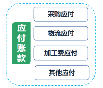 我们继续梳理应付款项,分为四个部分,分别是采购应付,物流应付,仓内加工费应付以及其他应付。