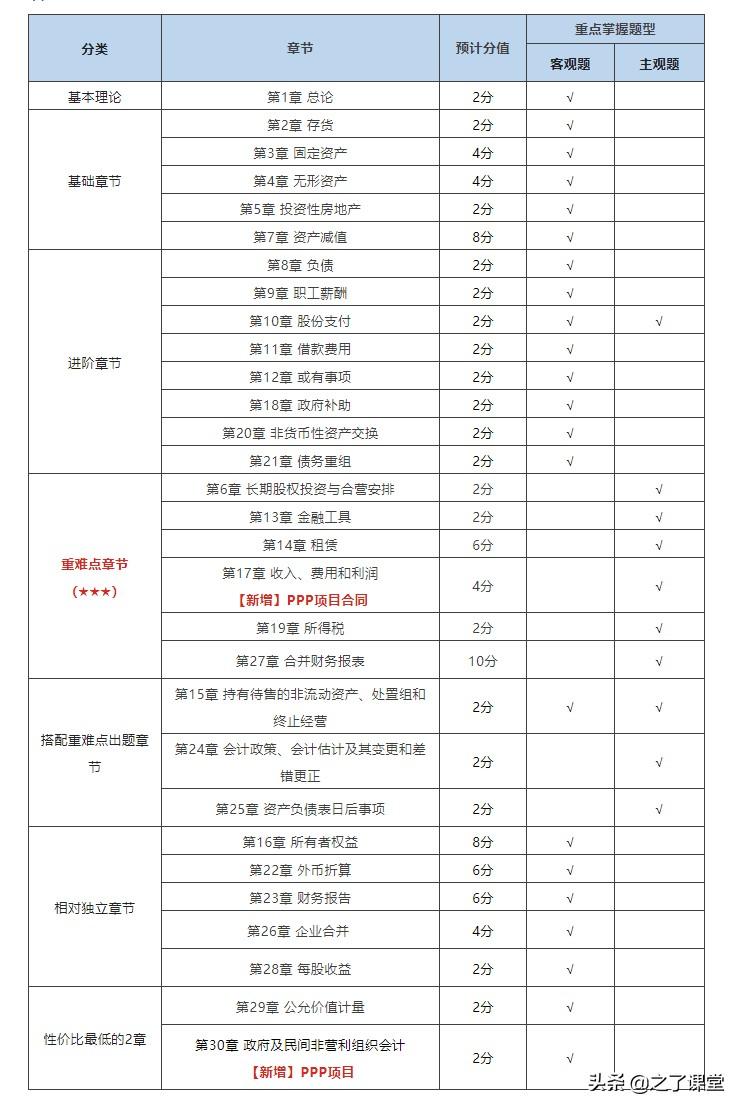 第三部分财务报告。包括第23章到28章,是站在最终报告环节思考问题。知识点综合度高,也易结合第二部分综合考察。二、三部分是考核的重点。