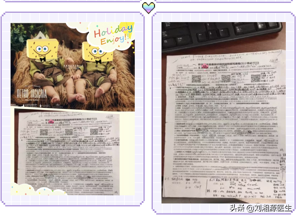 患者张女士,30岁,婚后5年,不明原因胎停三次,为何?5年来,张女士快处于绝望边缘之时找到了刘湘源教授,终于解开了反复胎停这个未解之谜—抗磷脂综合征,卵巢功能衰退,桥本甲状腺炎,维生素D缺乏,予阿司匹林+钙片+美卓乐+赛能+低分子肝素+辅酶Q10治疗后成功生下双胞胎,幸福来得实属不易。
