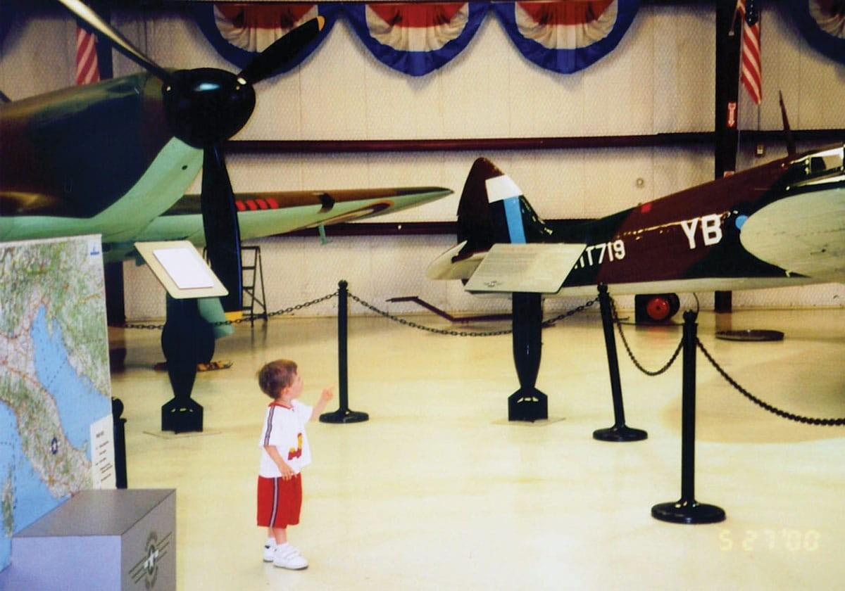 直到詹姆斯22个月大时,父亲布鲁斯带着他去达拉斯郊外的卡瓦诺飞行博物馆参观。